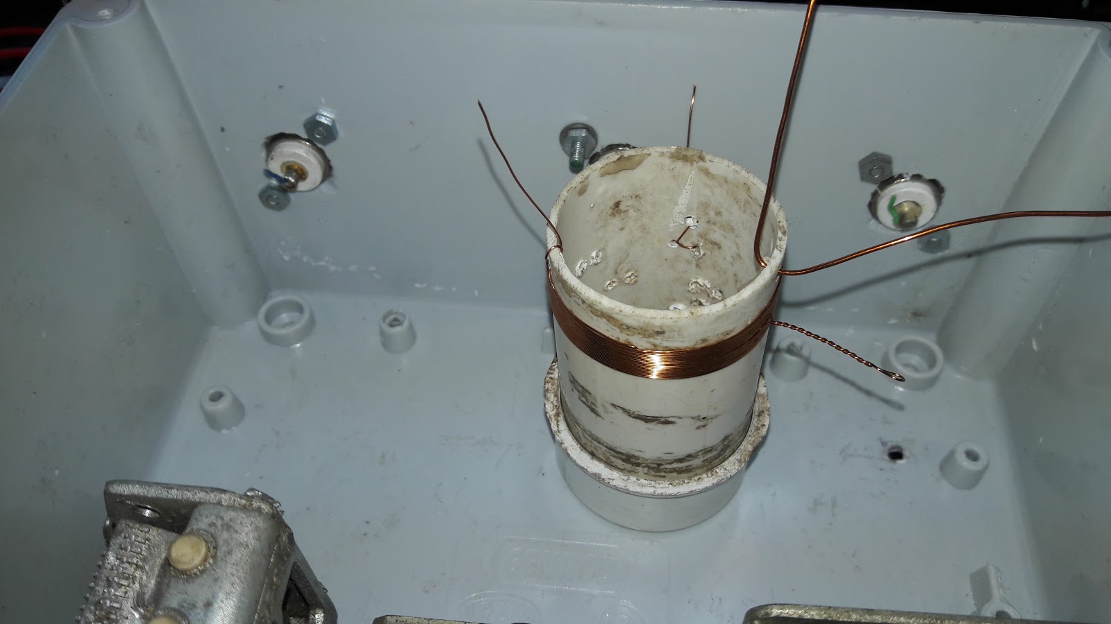 La bobina está compuesta por 16 vueltas de alambre esmaltado, con punto medio, es decir 8+8 vueltas.